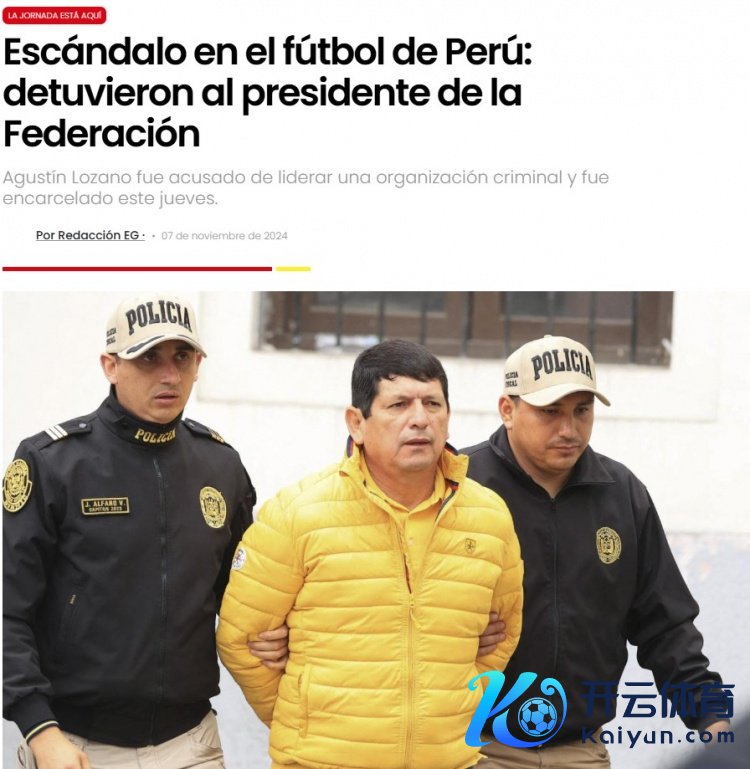 11月8日讯 外媒报说念,秘鲁足协主席阿古斯丁-洛萨诺因涉嫌交流违规组织被捕下狱。